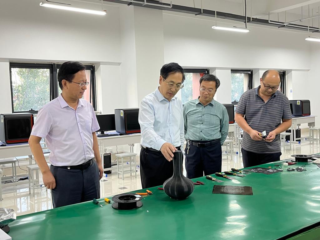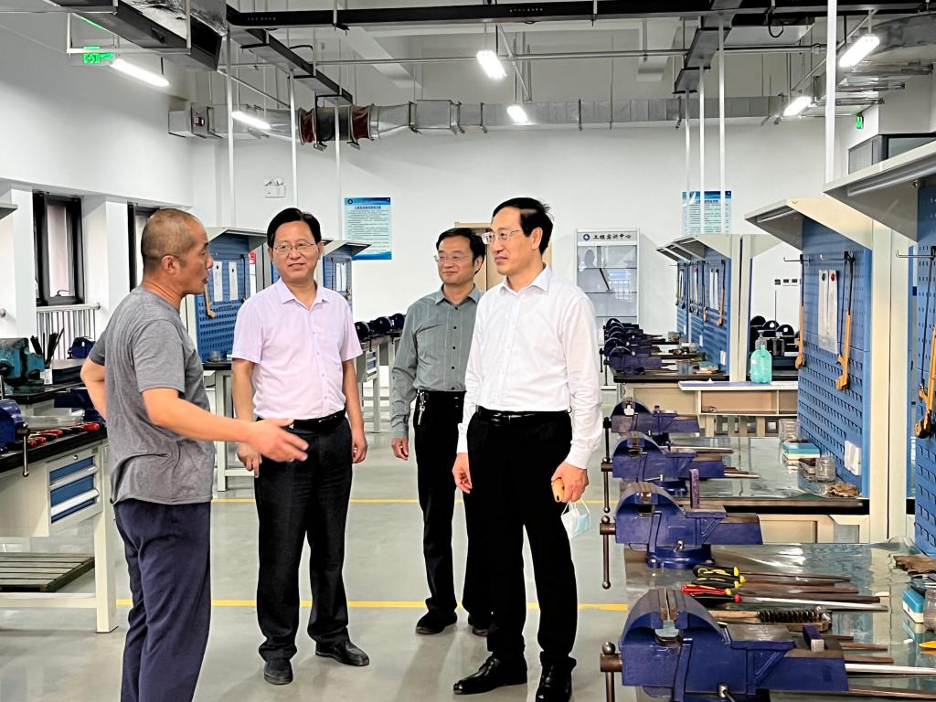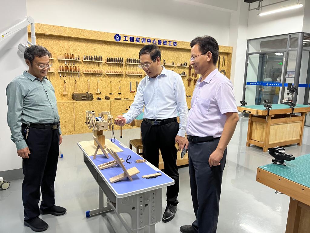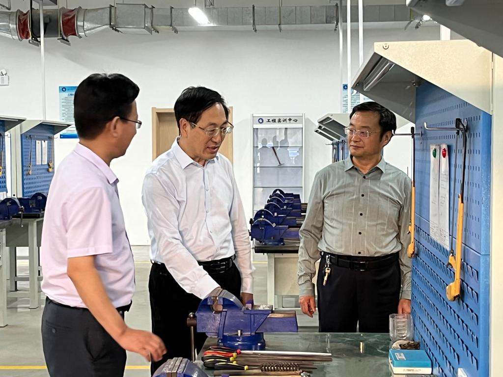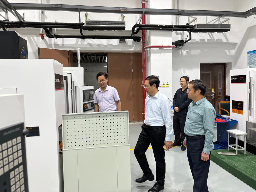 孙鹤汀副校长先后来到3D打印、钳工、铸造、焊接、电加工、普车、数控加工、木艺、创新实践室、智慧教室、报告厅、党员活动室等实训室和公共活动场所,详细查看设施设备的配备使用情况,询问各项实训项目的开展情况,查看学生的实训作品。